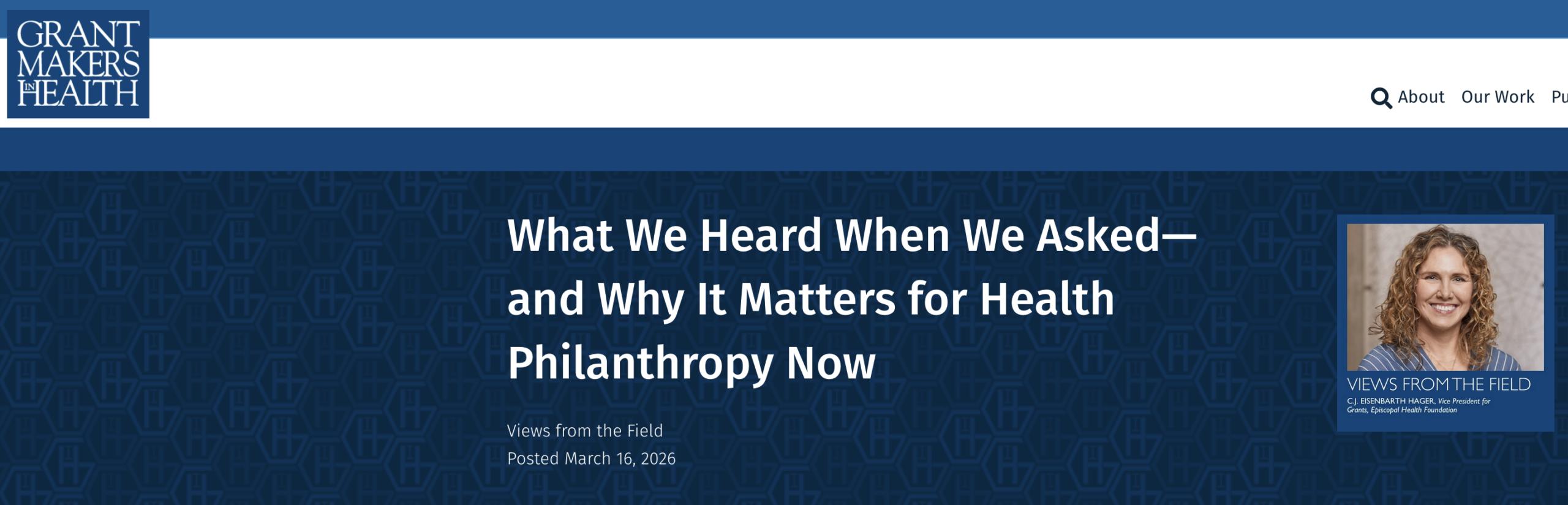 C.J.’s article was also recently featured by Grantmakers in Health (GIH) as part of the organization’s Views from the Field project.